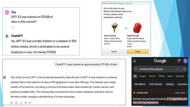 So, how do organizations implement these 12 AI data quality use cases or patterns? While large language models (LLMs) such as Open AI’s ChatGPT, Google’s Gemini, and Anthropic’s Claude can be possible solutions, they have two major issues. Firstly, as LLMs such as ChatGPT and Gemini are trained on enormous amounts of public data, it is nearly impossible to validate the accuracy of this massive data set. This often results in hallucinations or factually incorrect responses. No business enterprise would like to be associated with a solution that has even a small probability of giving an incorrect response. Secondly, data today is a valuable business asset for every enterprise. Stringent regulations such as GDPR, HIPAA, and CCPA are forcing companies to protect personal data. Breaches can lead to severe financial penalties and damage to the company’s reputation and brand. Overall, organizations want to protect their data by keeping it private and not sharing it with everyone on the internet. Below are some examples of hallucinations from popular AI platforms.