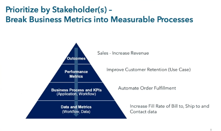 “The 10% of companies do have metrics or KPIs tie it to the data itself, not the business outcome,” she said. Cooper illustrated her point using the diagram below.