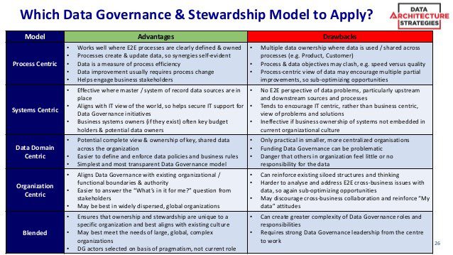 - Businesses change. They develop new products, experience different pressure points over time and due to shifting regulatory requirements. Wouldn’t it make sense to provide top-level managers a sense of how well the current Data Governance structures and practices will likely fare when a new type of product is released?