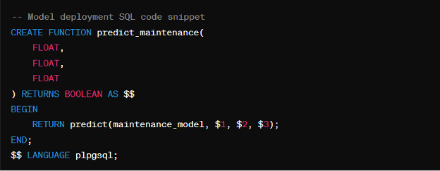 - Model deployment: Once you’ve built a great model, you can put it to work right away. In-database machine learning lets you deploy your model directly within the database as a user-defined function (UDF). This means you can get predictions on new data instantly, without needing to move information around or rely on external tools.
