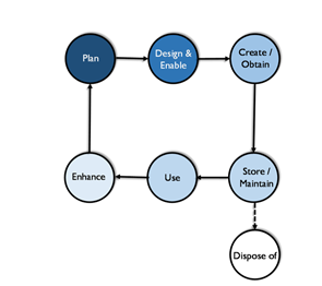 Companies rely on Data Governance, the formal Data Management of people, technology, and practices, to balance data risks and opportunities. Managing Data Governance takes on even more importance across the data lifecycle, from data planning to data disposal, as shown in the diagram below