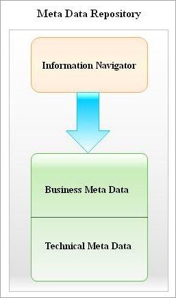Some sort of interface, like an information navigator, sits on top of technical and business metadata, allowing the user access to the metadata repository.