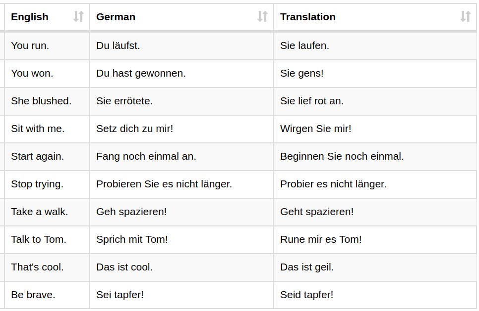 Figure 1. An excerpt from the English <-> German translation dataset.