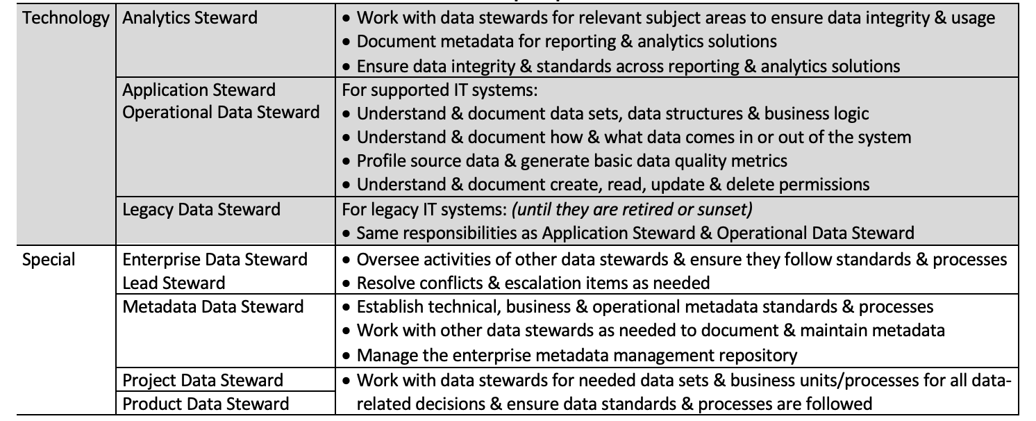 Beyond these duties, your data stewards may have additional responsibilities as well depending on which function (discussed in Question 2) aligns to their role: