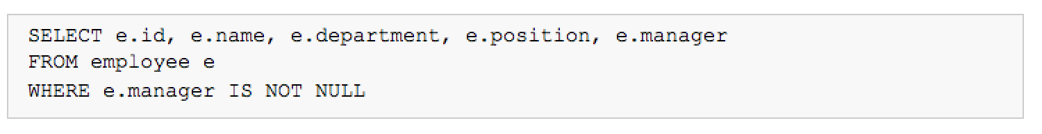 This recursive query retrieves records of all the employees who have some manager, or their manager column is not null.