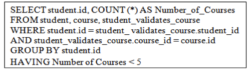 As a proof of concept, we have experimented using the prototype to generate an executable SQL script according to the process described in the Fig. 5 in order to verify whether or not a given state of relational database conforms to the constraint that SBVR BR imposes. Fig. 6 shows the skeleton of the script generated from the LF of the running example shown in the Fig. 4.