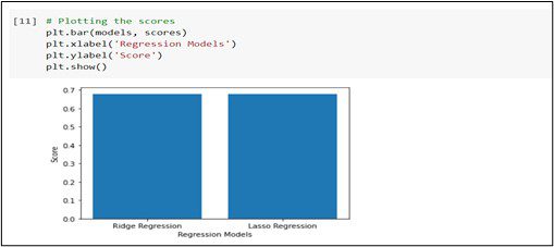 Step 9: Finally, we shall be plotting the scores with “Regularization Models” marked on the x-axis and “Score” on the y-axis.