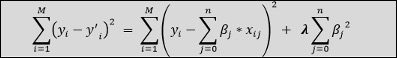 In this technique, the amount of bias added to the model is known as Ridge regularization penalty and the cost function is altered by adding the penalty term to it. We can calculate it by multiplying the lambda to the squared weight of every individual feature, which says the equation for the cost function in ridge regularization will be: