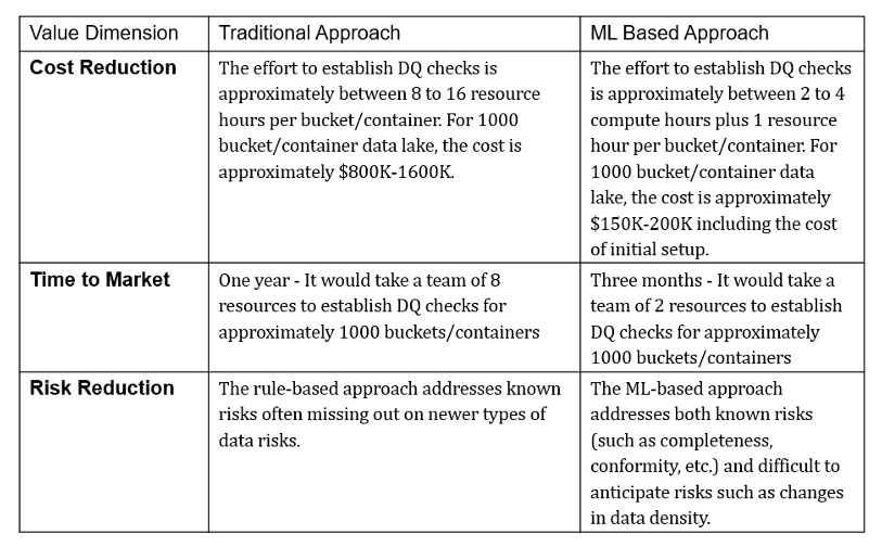 The benefits of ML-based data quality fit broadly in two categories: quantitative and qualitative. While the quantitative benefits make the most powerful argument in a business case, the value of the qualitative benefits should not be ignored.