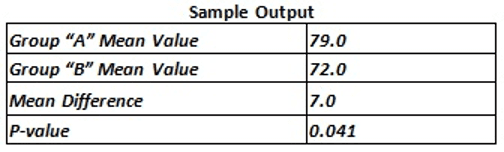 - At a 95 percent confidence level (5 percent chance of error): As p-value = 0.041, which is less than 0.05, there is a statistically significant difference between the means of the two groups A and B. The mean of Group A is significantly higher than that of Group B.