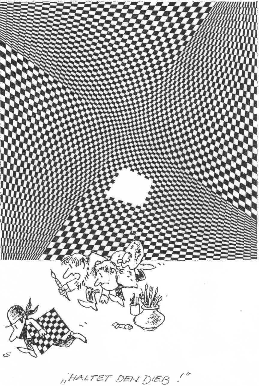 “Haltet den Dieb!” means “Stop thief!” in German. The cartoon is by Heini Scheffler, CC BY-SA 3.0 (http://creativecommons.org/licenses/by-sa/3.0), via Wikimedia Commons, (https://commons.wikimedia.org/wiki/File%3ASchachBrettDieb.jpg).