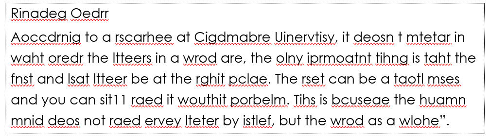 … is an example highlighting how memory supported the quick scanning of words in a document, showing that not all letters are needed.